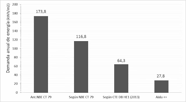 Como sabéis los que nos conocéis, nos gusta siempre comprobar con datos fiables, por lo tanto, vamos a realizar simulaciones informáticas para ver cómo influye este nivel de aislamiento en la demanda de energía de un edificio situado en León (zona climática E1).